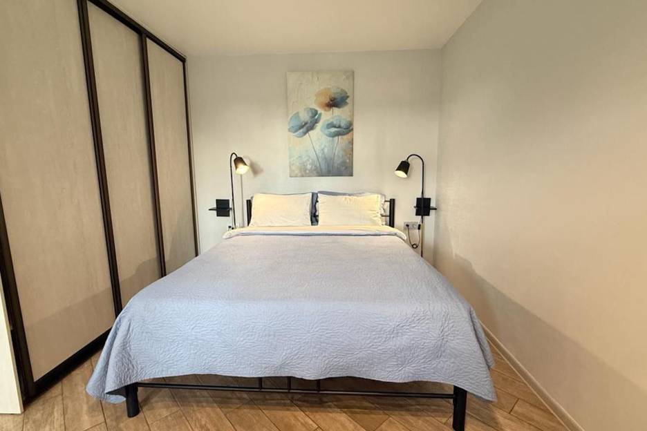 В спальной зоне расположена удобная и комфортная кровать с ортопедическим высоким матрасом, Smart TV , большой вместительный шкаф, в кухонной зоне двухспального дивана-кровати - комфорт класса.
