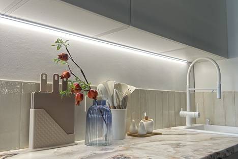 ✅ Современная кухонная зона: встроенный осмотический фильтр для воды, посудомоечная машина, холодильник, микроволновая печь, духовой шкаф, индукционная плита, чайник, кофеварка