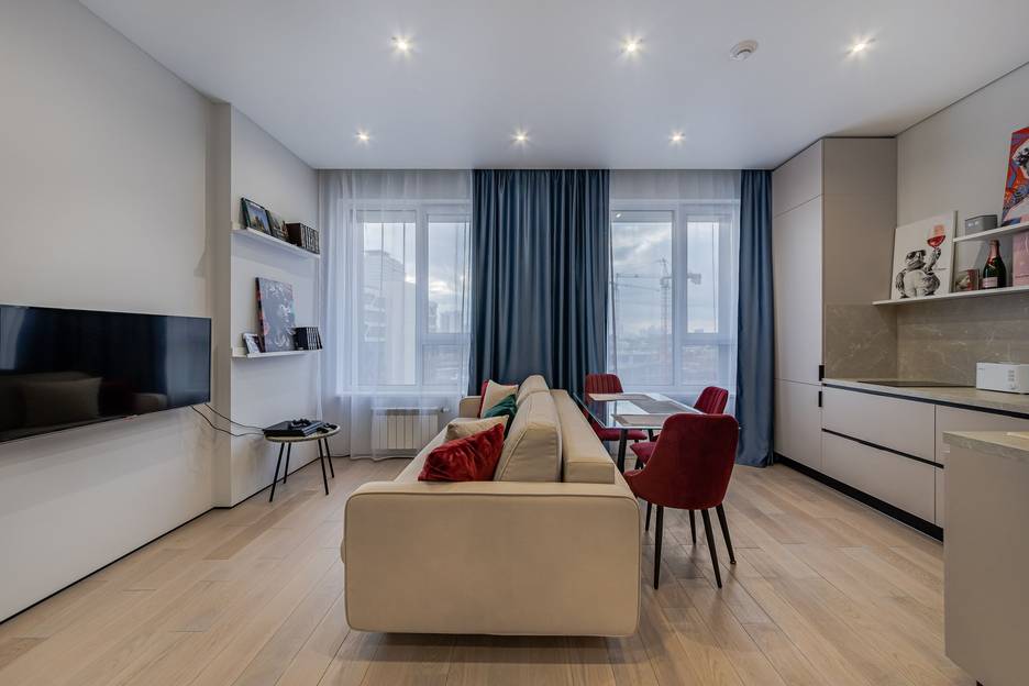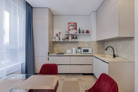 Большая куxня - гocтинaя, оснащена всей необходимой техникой ( микроволновая печь, кофеварка, тостер, электрический чайник и двухкомфорочная индукционная плита, все необходимые кухонные принадлежности) и мебелью для комфортного нахождения в данной зоне. Настроение создаст Алиса, удобный двуспальный диван расположит к приятному времяпровождению у умного телевизора или игрой в PlayStation 4.