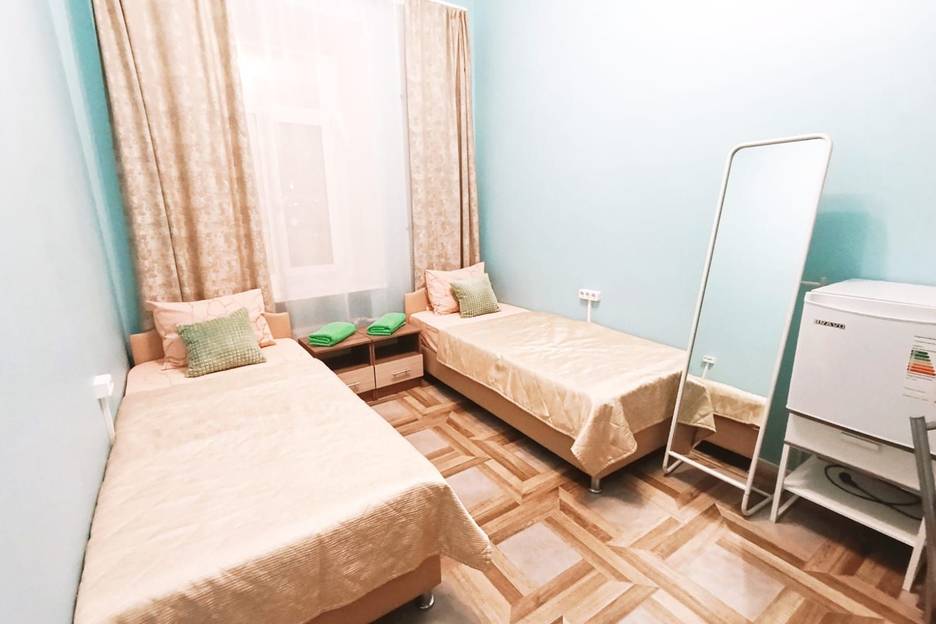 2-х местная комната с раздельными кроватями, которые можно составить вместе по запросу гостей. Кровати деревянные, матрасы средней жесткости, подушки гречишные, с ортопедическим эффектом. В номере есть шкаф для одежды с плечиками, вешалка настенная, стол, стул, мини-холодильник, телевизор, зеркало,светильник потолочный, урна. Окно выходит на ул. Набережная реки Фонтанка. Вид из окна на сквер и набережную. В комнате есть все необходимое для проживания. В стоимость входит: комплект постельного белья и полотенце. На территории 3 санузла. Из них: 2 душевые совместно с туалетом и 1 туалет отдельно. Большая кухня-гостиная, полностью оборудованная техникой и посудой для приготовления и приема пищи с круглосуточным посещением. В доступности чай, кофе, какао, цикорий, сахар, специи, крупы. Вход в квартиру по электронному ключу без ограничений по времени.