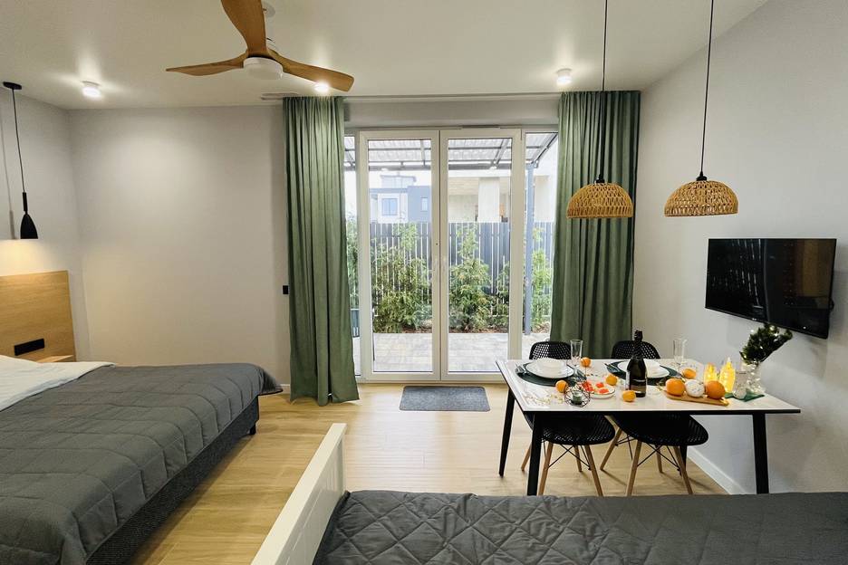 - Дизайнерский ремонт в скандинавском стиле с панорамными окнами на собственную террасу;