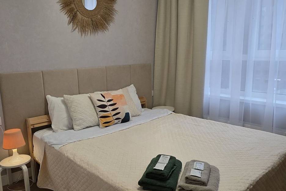 В квартире имеется отдельная спальня с широкой кроватью и ортопедическим матрасом. В зале есть два двухспальных дивана, ЖК телевизор со смарт тв. Кухня оборудована всей бытовой техникой, включая посудомоечную машину. Так же имеется всё необходимое для отдыха и работы: холодильник, стиральная машина, электрический чайник, СВЧ, фен, утюг, гладильная доска, посуда.