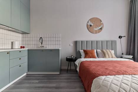 Останавливались на 10 суток. Уютно, чисто. Всё необходимое для проживания есть. Отдельное спасибо за приятные бонусы - капсулы для стирки, чай двух видов и масло для жарки уточек! Единственное неудобство - отсутствие розеток возле кровати, но, в наличии был удлинитель, им пользовались. Что касается поступной среды для инвалидов - есть лифт, но, чтобы им воспользоваться, необходимо подняться по лестнице. И лифт останавливается не на площадке на этаже, а между этажами, конечно же это не вина компании, а конструктив дома, учтите, если едите с инвалидом. В целом всё отлично, обязательно будет пользоваться услугами данной компании!