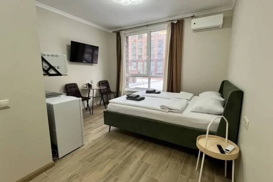 В студии вас ждет удобная двуспальная кровать с ортопедическим матрасом, кондиционер и телевизор. Современный душ с полным набором гигиенических принадлежностей. Небольшая кухня с индукционной плитой, посудой, чайником, чаем и кофе — всё для лёгких перекусов. Также в распоряжении — фен, утюг с гладильной доской и стиральная машина.