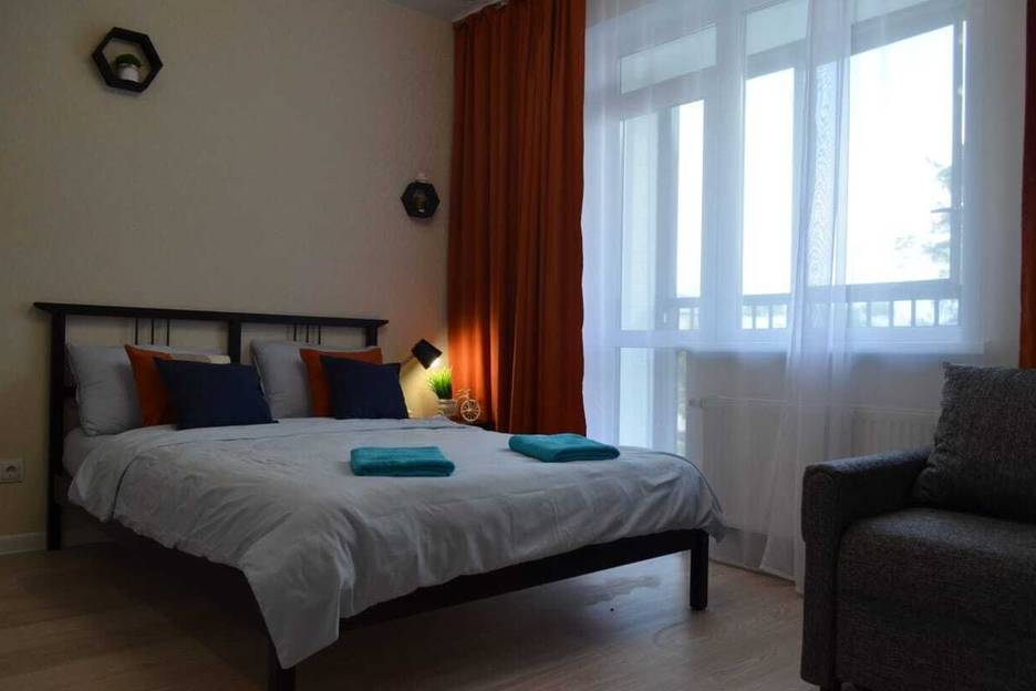 Абсолютно новая студия с балконом для Вашего отдыха. Bместимocть дo 3 гоcтей.