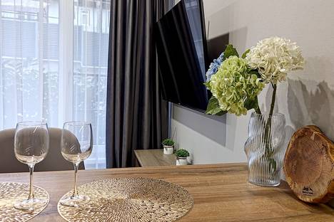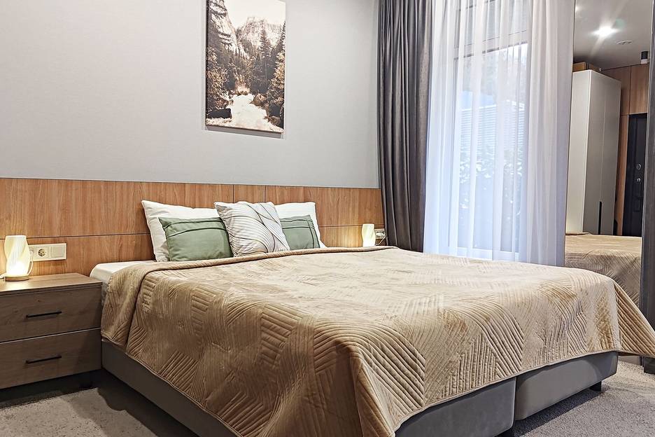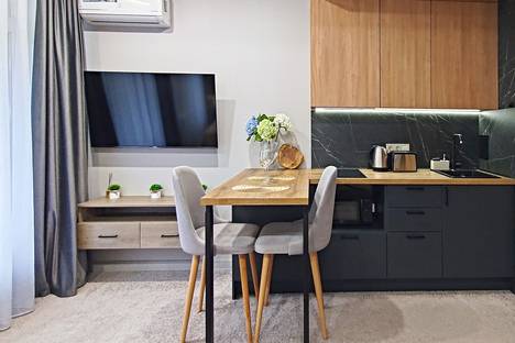 Мы собрали всё необходимое для вашего идеального отдыха и смены обстановки в одном месте. Уютная чистая студия с привлекательным интерьером в тёплых тонах создаст атмосферу домашнего уюта. Удобная кухня позволит приготовить любимые блюда, а мягкая и комфортная кровать обеспечит глубокий сон. Вас ждут пушистые полотенца и прочие мелкие, но важные детали, о которых мы заранее подумали, чтобы сделать ваш отдых приятным и комфортным.