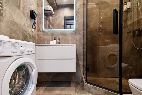 ▌Душевая зона с тропическим душем, раковина, туалет, гигиенический душ, стиральная машина. Косметические средства, порошок для стирки белья.
