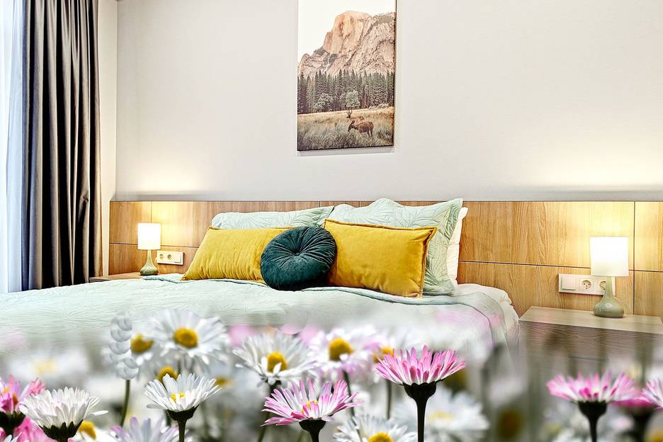 Здесь есть всё необходимое для приятного и спокойного отдыха: удобная мебель, современная техника и приятные мелочи, создающие особое настроение.
