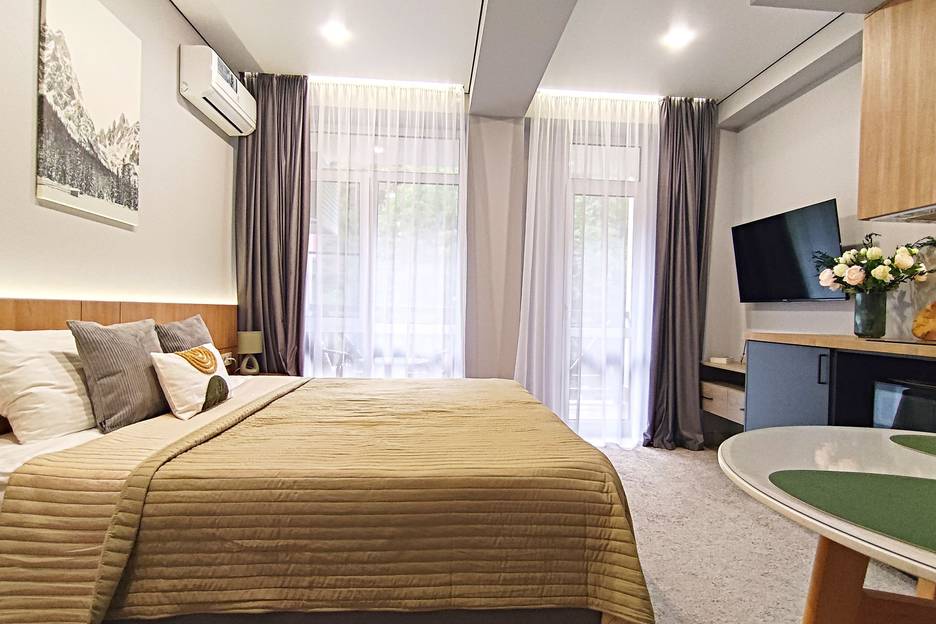 Вы рядом с густым лесом, наполненным свежестью и ароматным воздухом. Неподалеку протекает река, мягкий шум которой дополняет природную картину. Апартамент создан специально для вас, чтобы вы прочувствовали уют и комфорт в каждой детали.