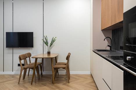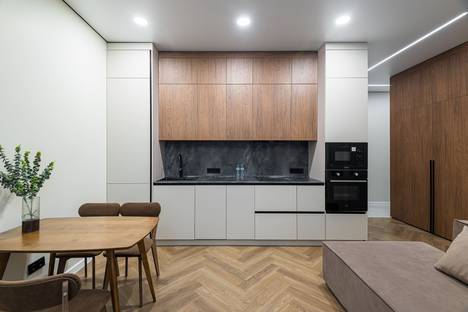 Современные апартаменты Flat Inn расположены в новом доме рядом с метро Шелепиха и деловым центром Москва-Сити. Просторная квартира площадью 41 м² выполнена в тёплых тонах и продумана для комфортного проживания.