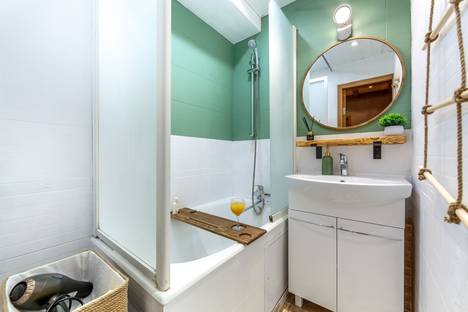 - Санузел совмещённый, ванна, стиральная машина, фен, утюг