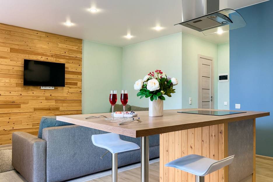 ✅ Кухня со всем необходимым (холодильник, варочная панель, микроволновая печь, чайник, а так же посуда, приборы и фильтр для питьевой воды)