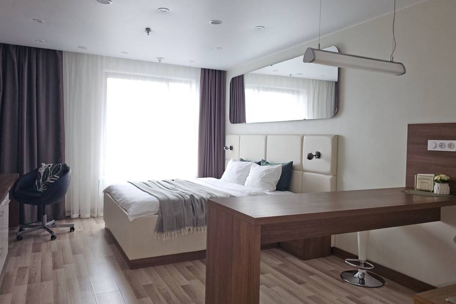 Для сна и отдыха: двуспальная кровать, качественное постельное белье, затемняющие шторы «блэкаут».