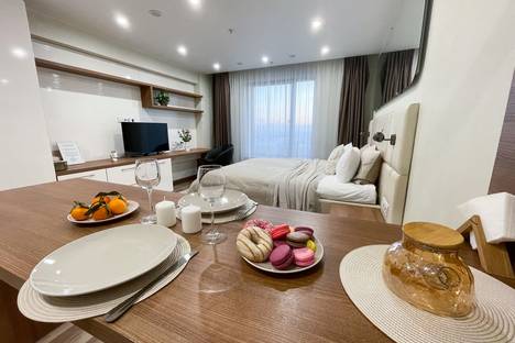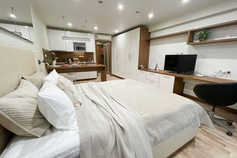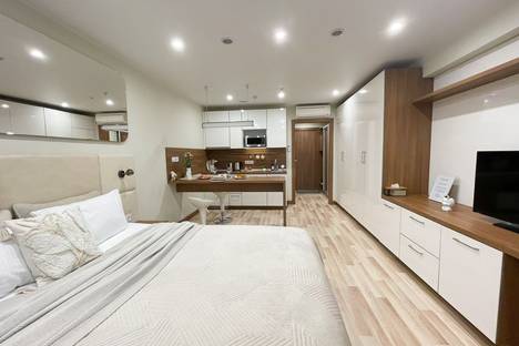 Приглашаем в современную студию площадью 29 м² на 14-м этаже жилого комплекса «Апарт-отель YE’S». Апартаменты рассчитаны на комфортное проживание до двух гостей и оборудованы удобной двуспальной кроватью.