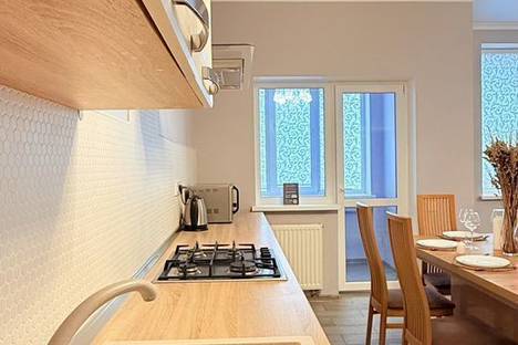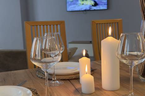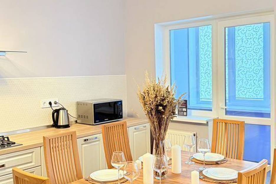 * Оснащение: В апартаментах выполнен свежий, стильный ремонт. Полностью оборудованы всей бытовой техникой: Smаrt ТV, стиральная машина, газовая плита микроволновая печь и холодильник.
