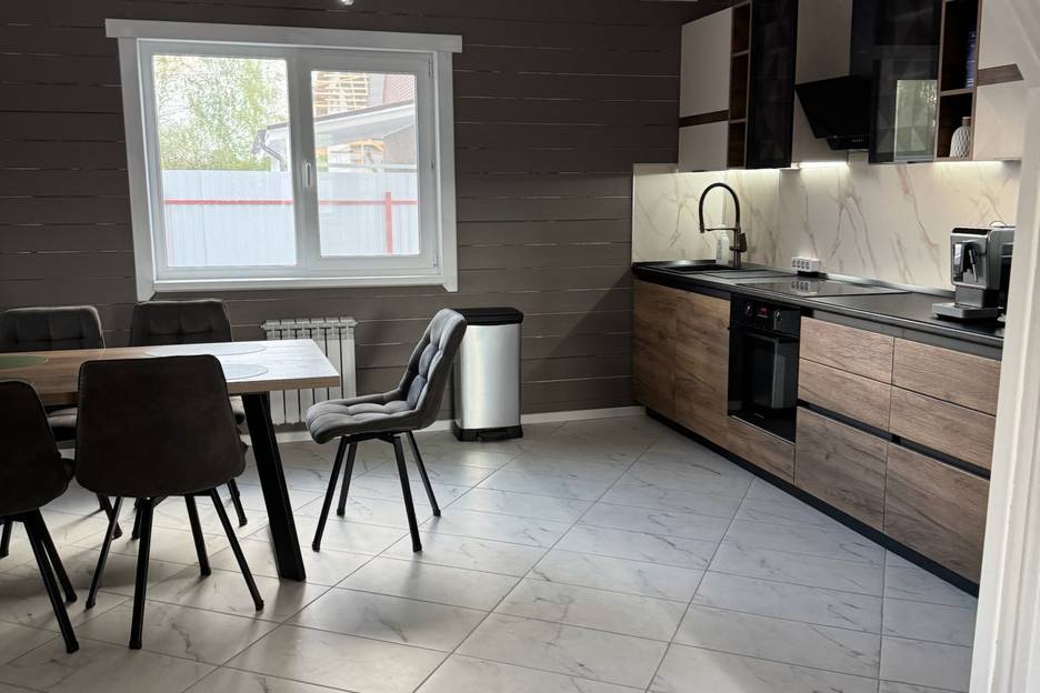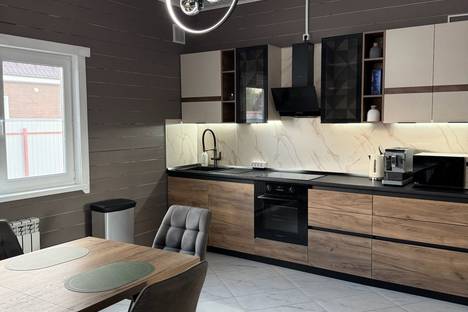 Просторная кухня , оборудованная всей необходимой техникой (варочная панель, микроволновая печь, чайник , холодильник , посудомойка , кофемашина), набором кухонных принадлежностей и комплектом посуды.
