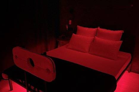 Поиграть с гильотиной и клеткой, а так же поиграть в медицинском уголке для фантазий, выходящих за пределы. Кованная кровать с фиксациями для особенных моментов.