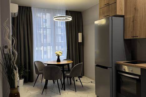 Доброго времени! Сдаётся шикарная двух комнатная квартира. Квартира расположена на четвёртом этаже современного жилого комплекса. Комплекс с закрытой территорией. Рядом с комплексом удобно расположены магазины, пекарня, столовые, пвз ВБ и Озон. Большая предомовая территория с удобными детскими площадками и зоной отдыха. Квартира после ремонта, оснащена техникой, мебелью, текстилем и всем необходимым для удобного проживания. В квартире расположена двухспальная кровать 160*205 и мягким уголком в гостиной, который трансформируется в полноценное спальное место 140*200. Так же для вашего комфортного прибывания мы предусмотрели; разовые тапочки, шампуни, гель для душа, полотенца, качественное постельное белье.