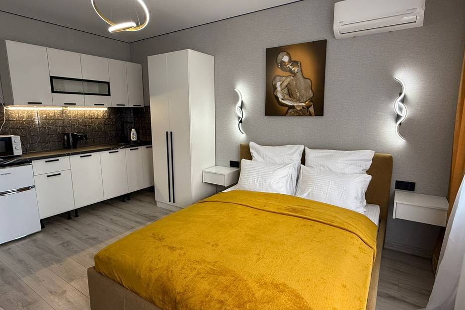 Балкон выходит во двор дома. Кондиционер. Удобная кровать с белоснежным постельным бельем отельного типа. Автономное отопление, соответственно проблем с горячей водой нет. Вся мебель и техника новые. Полный комплект посуды и кухонной утвари для приготовления пищи.Фильтр воды облегчит ваш быт. WI FI бесплатный, смарт ТВ.