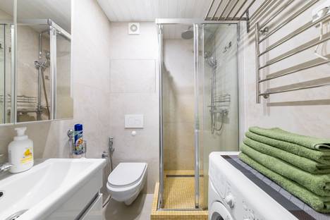 •Стиральная машина, кондиционер, гладильная доска, фен, утюг, сушилка для белья, персональные средства гигиены (гель для душа, шампунь, тапочки)