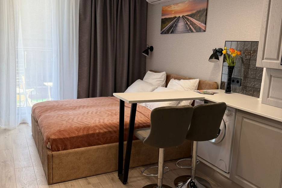 Балкон выходит во двор дома.В вечернее время зажигается красивая подсветка всего комплекса. Кондиционер обеспечит комфортный отдых в любое время года. Фильтр на воду облегчит ваш быт. Удобная кровать с белоснежным постельным бельем отельного типа. Автономное отопление, соответственно проблем с горячей водой нет. Вся мебель и техника новые. Полный комплект посуды и кухонной утвари для приготовления пищи. WI FI бесплатный, смарт ТВ.