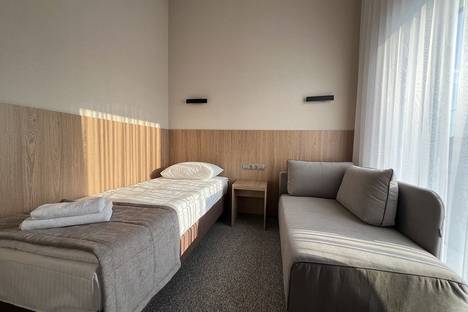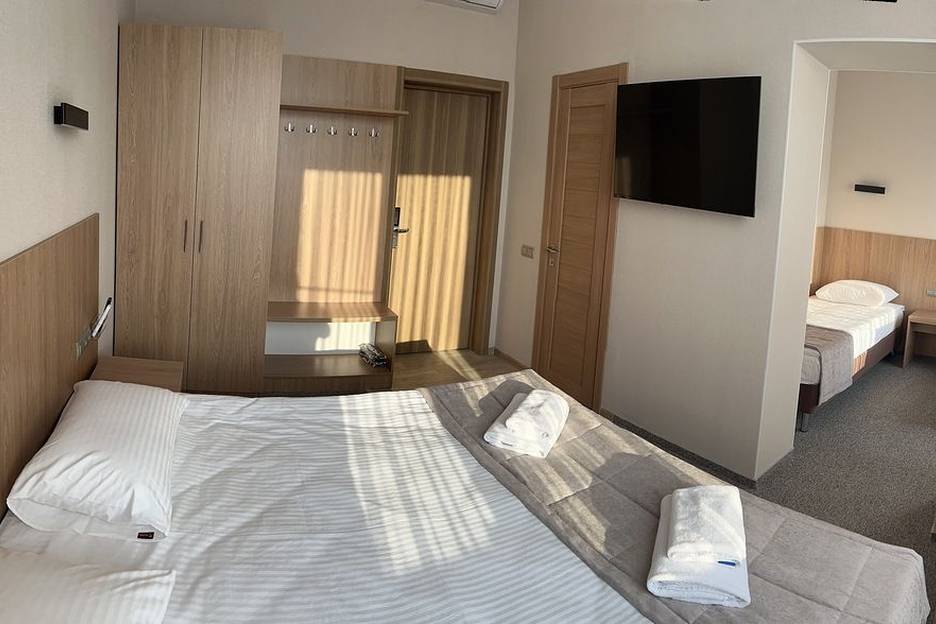 Номер состоит из 2-х комнат. В первой 2-х спальная кровать 1,8 м, во второй кровать 0,9 м. + раскладной диван 0,9 м. Расположены в уютном отеле Легенда, рядом с трассой М4_671-й км.! У нас всегда комфортно и чисто, удобные матрасы и хрустящее бельё! Во всех номерах есть телевизор, кондиционер,чайник, собственная душевая и санузел.Своим гостям мы предоставляем проживание с любыми питомцами, стирку, сушку белья и завтраки за доп.оплату. Бесплатно, по просьбе гостей,предоставляем фен и утюг, а так же детскую кроватку. На общей кухне гости могут разогреть или приготовить еду. Чай и кофе бесплатно! Рядом есть магазины,кафе и столовые. Мы всегда рады своим гостям!