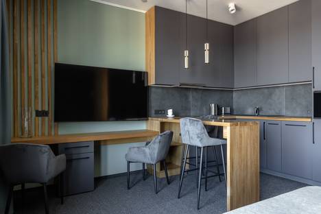 Апартамент 7 - стильный номер на 25 этаже 28-этажного ЖК «Матч Поинт», из окон которого открывается восхитительный вид на парк Фили и Москву! Площадь студии 36 кв. м, уютная и просторная, подойдет и для командировочных, и для семейной пары.