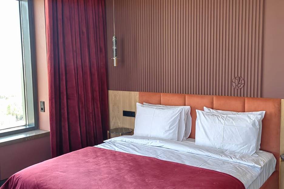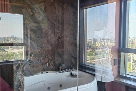 Апартамент 9 премиум-класса располагается на 25 этаже 28-этажного ЖК «Матч Поинт» и представляет собой двухкомнатный номер площадью 65 кв. м с огромными панорамными окнами, выходящими на 2 стороны. Гостям представляются потрясающие виды на парк Победы и Поклонную гору, а также оживлённый Кутузовский проспект. Просторный апартамент имеет полноценную спальню с огромной двуспальной кроватью и качественным ортопедическим матрасом. За стеклом в спальне находится уютный санузел с ванной-джакузи у видового окна. Номер рассчитан на комфортное размещение 2-4 гостей, так как в гостиной имеется большой раскладывающийся диван.