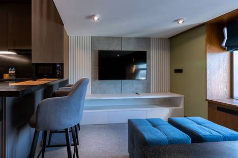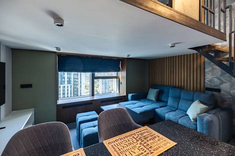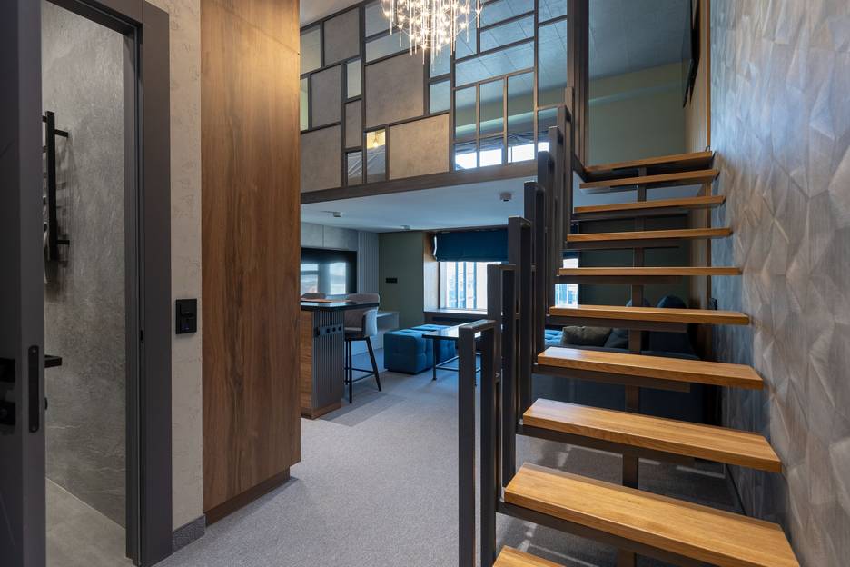 Апартамент 14 представляет собой просторный двухуровневый лофт с современным дизайном и великолепными видами на Москву, расположенный на 28 этаже 28-этажного ЖК «Матч Поинт». Площадь номера 42 кв. м, высота потолка 4 м, благодаря чему гости могут комфортно отдыхать в 2-х зонах: спальне на 2-м этаже с полноценной двуспальной кроватью и гостиной на 1-м этаже с двуспальным раскладным диваном. Также предусмотрена кухонная зона со всем необходимым инвентарем. Апартаменты пользуются популярностью как у семейных и романтических пар, так и у компаний 3-4 человека.