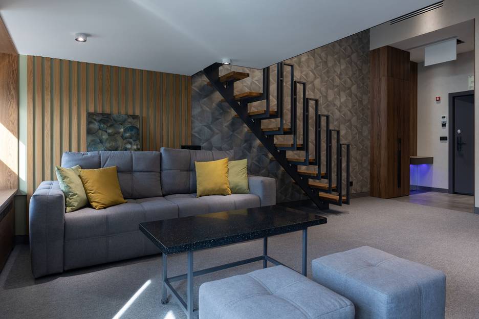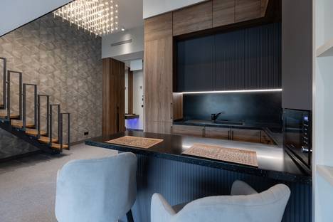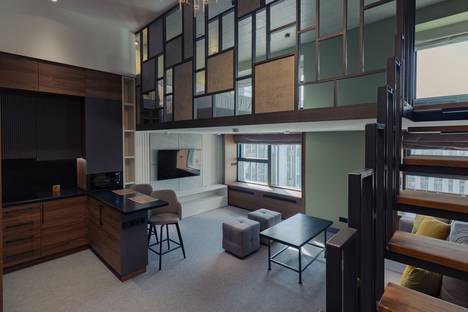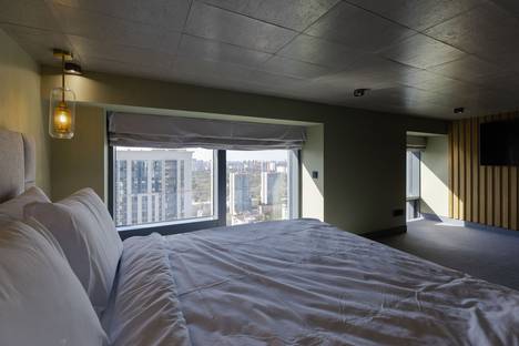Апартамент 15 - современный двухуровневый лофт на 28 этаже 28-этажного ЖК «Матч Поинт» представляет собой просторную квартиру площадью 46 кв. м с высокими 4-метровыми потолками. Пространство разделено на 3 зоны: кухонную, где есть все необходимое для приема и приготовления пищи, гостиную на 1-м этаже и спальню на 2-м этаже. В апартаменте с комфортом могут разместиться 2-4 человека благодаря полноценной двуспальной кровати и большому раскладному дивану. Изюминкой лофта является дизайнерский ремонт и панорамные окна, из которых открываются восхитительные виды на парк Фили и кипящий жизнью Кутузовский проспект!