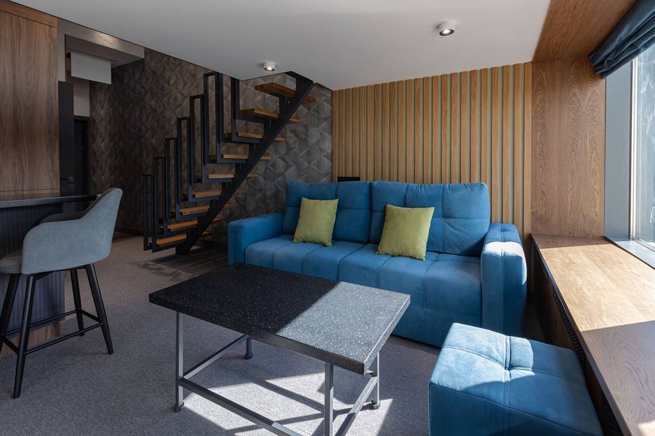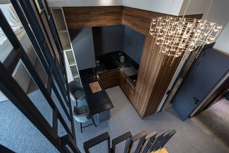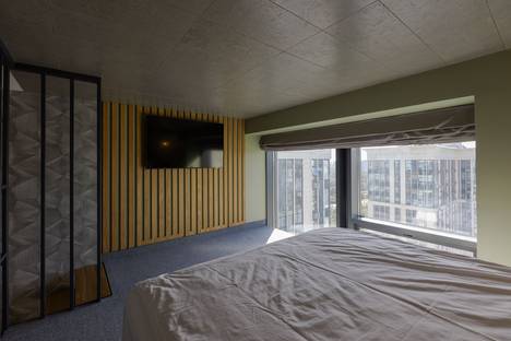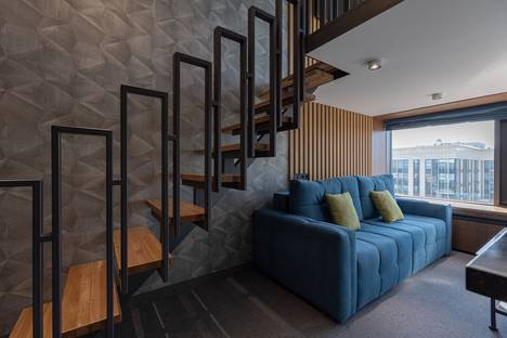 Апартамент 16 представляет собой просторный двухуровневый лофт с современным дизайном и невероятно красивыми видами на Москву, расположенный на 28 этаже 28-этажного ЖК «Матч Поинт». Площадь номера 42 кв. м, высота потолка 4 м, благодаря чему гости могут комфортно отдыхать в 2-х зонах: спальне на 2-м этаже с полноценной двуспальной кроватью и гостиной на 1-м этаже с двуспальным раскладным диваном. Также предусмотрена кухонная зона со всем необходимым инвентарем. Апартаменты пользуются популярностью как у семейных и романтических пар, так и у компаний 3-4 человека.