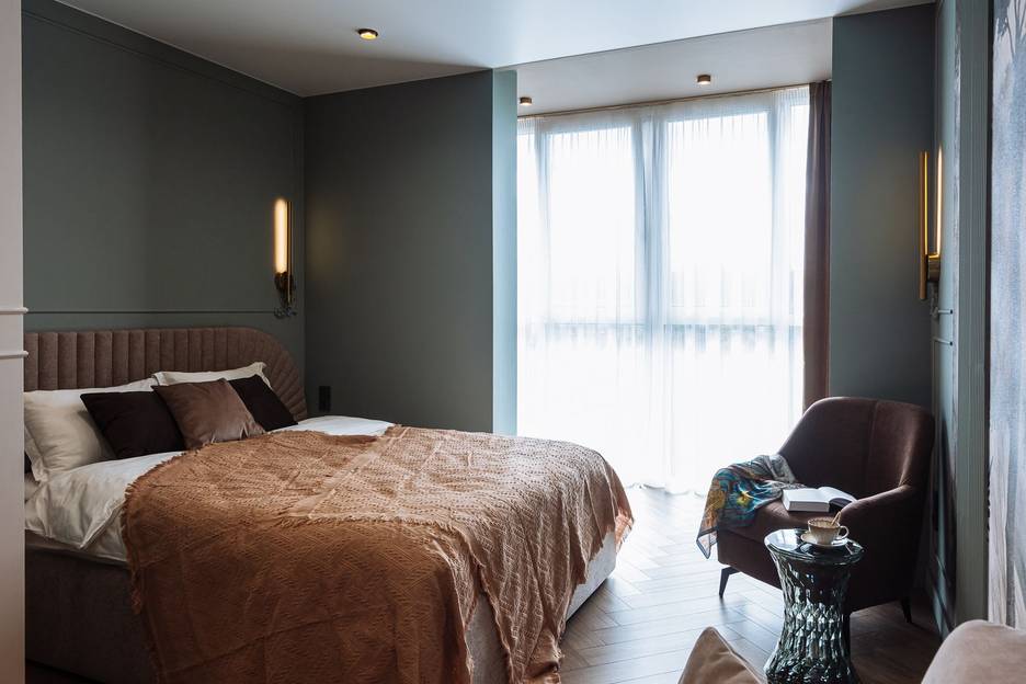 Спальная зона: двуспальная кровать 160*200см с новым премиальным матрасом от Аскона, постельное белье, удобное кресло для чтения;