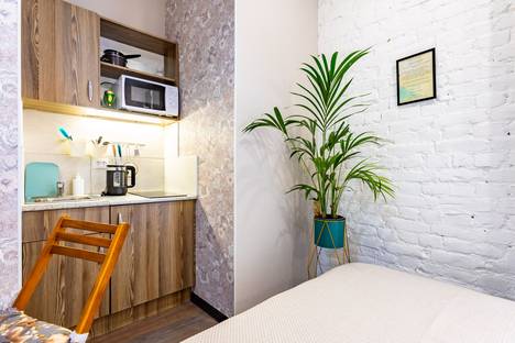 Уютная стильная студия с отличным местоположением. Из минусов — с открытым окном в октябре прохладновато, интернет периодически прерывался на пару секунд.