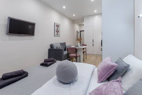 Квартира очень просторная, были вдвоём. Всё на своих местах, максимально комфортно, продумано до мелочей. Дизайн радует глаз, таких мест не видел вообще. Виз из огромного окна изумительный, особенно закаты. Соседей не слышали, вся техника работает. А телевизор это нечто, в кинотеатр можно не ходить. Спасибо творцам за данную локацию.