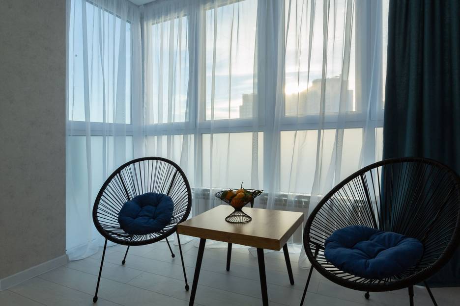 Альма — дизайнерские апартаменты с видом на городской горизонт, где главным украшением служит свет, играющий в панорамных окнах. Уютная зона у стекла с двумя креслами приглашает к созерцанию вечерней зари и тихим разговорам. С 2019 года сеть «Атмосфера» обеспечивает безупречную чистоту и сервис — бронируйте для работы или отдыха с гарантией качества.