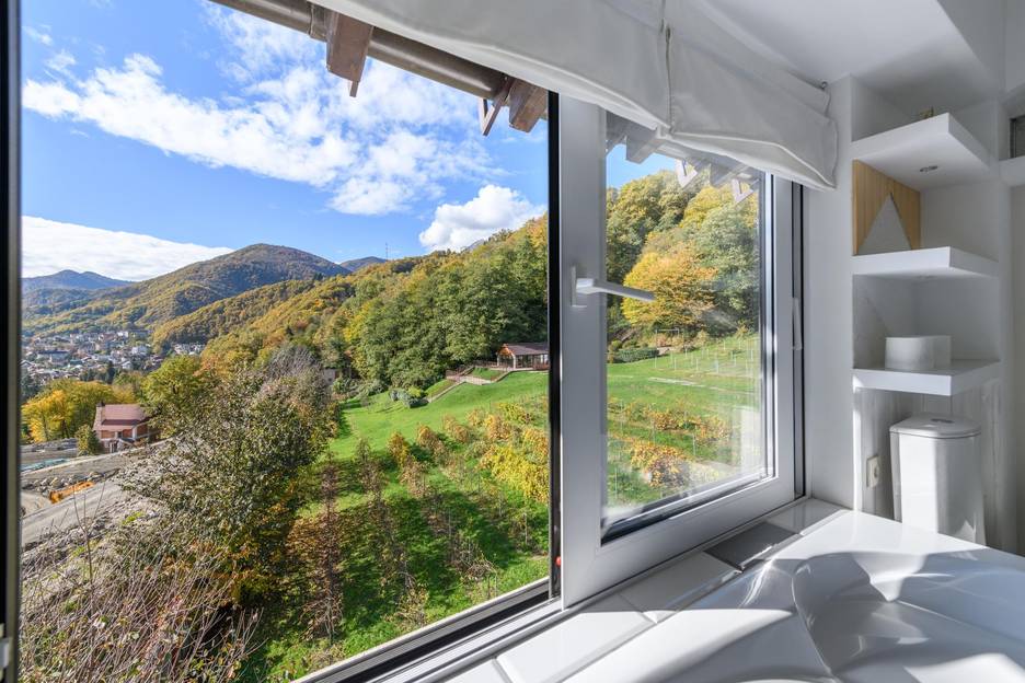 • Ванна с видом → релакс с горными пейзажами