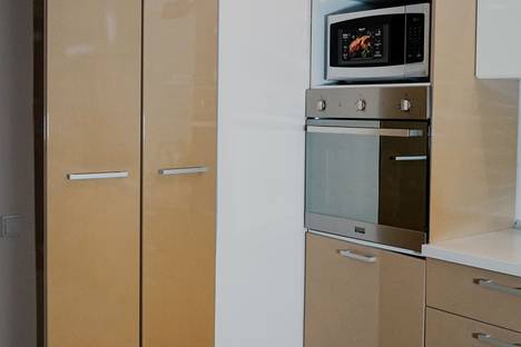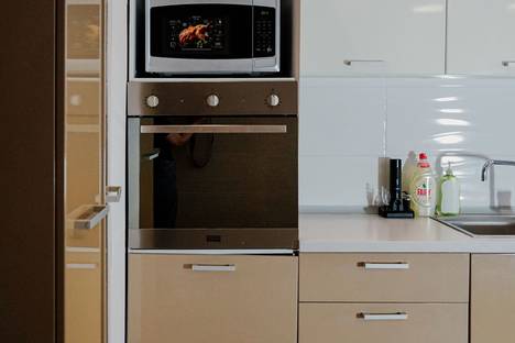Полностью оборудованная кухня: варочная панель, духовка, микроволновка, холодильник, электрочайник, полный набор посуды