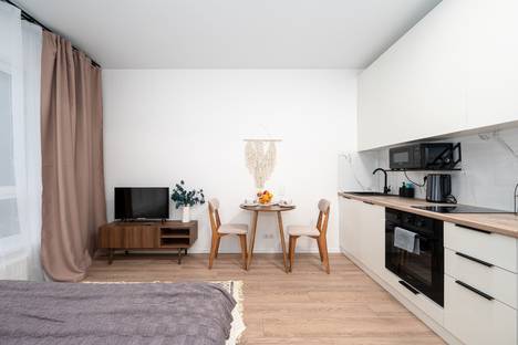 Просторная студия с современным дизайнерским ремонтом и собственной кухней в новом доме. Расположение всего в 5 минутах до Лиговского проспекта.