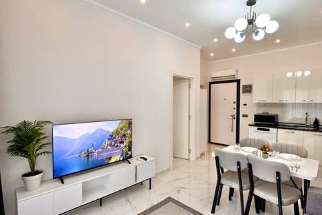 Просторная квартира планировки 1+1 расположена фактически на 2-м этаже (1-й этаж по нормам Турции), площадью 52 м². Окна выходят на солнечную южную сторону.