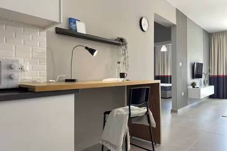 Апартаменты выделяются продуманным интерьером, где каждая деталь создаёт атмосферу стиля и уюта. Открытое светлое пространство, акцентные элементы декора делают её по-настоящему особенной.