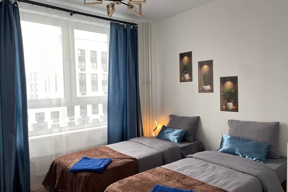 В апартаментах комфортно могут разместиться 5 гостей (2 односпальных кровати, с возможностью сдвинуть в двуспальную и 3 одноместных раскладных кресла)