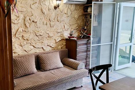 Внимание!!! В Коктебеле продолжается реконструкция набережной, центральная часть набережной закрыта. Открыты пляжи: Юнге, Белый Грифон, Карадаг, Тихая бухта. Сдаётся посуточно двухэтажная квартира с террасой 48 кв.м. на земле в пгт Коктебель в дачном массиве недалеко от моря (700 м), с двумя входами, 2 кондиционерами, Wi-Fi, TV через интернет, с кухонной зоной, 2 совмещенными санузлами, балконом, постоянным водоснабжением по адресу улица Аксенова, 22/1 рядом с отелем Медведь. Расстояние до моря и набережной с аквапарком и дельфинарием 700 м, ближайший магазин 200 м, до рынка - 600 м, автостанция - 850 м. Первый этаж: кухонная зона (рабочая зона кухни, микроволновка, эл. чайник, индукционная плита, холодильник, водонагреватель, посуда и кухонные принадлежности, бытовая химия), двуспальная кровать и двуспальный диван-кровать, стол обеденный, 4 стула, комод, вешалка для одежды, гардеробная, пуфик, постельное белье, журнальный столик, телевизор, кондиционер, санузел (душевая кабина, подвесная раковина с зеркалом, унитаз, стиральная машина, полотенца, рукав для сушки полотенец, утюг с гладильной доской, туалетные и ванные принадлежности, бытовая химия, водонагреватель, сушилка для белья). Зона отдыха: мангал с закрытым огнем, столик и два стула. Второй этаж: диван кровать 1,5, постельное белье, кондиционер, столик раскладной с настенной полкой для посуды, стул, телевизор, шкаф, горка для тв, холодильник для напитков, санузел (душевая кабина, подвесная раковина с зеркалом, унитаз, полотенца, туалетные и ванные принадлежности, бытовая химия, водонагреватель, водоснабжение постоянное (центральное и автономное). Терраса: ротанговые 2 стола и 2 кресла, 2 кресла-мешка, надувной бассейн. Разрешено размещение с детьми любого возраста, домашними животными (собаками мелких пород по договоренности). Запрещено курение в квартире (на террасе и зоне отдыха есть места для курения). Заезд после 14.00, выезд до 10.00. В квартире предусмотрено размещение не более 4 человек, включая детей. Сдается первый сезон. Сдается с 01.05. по 01.11.