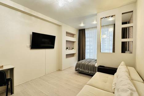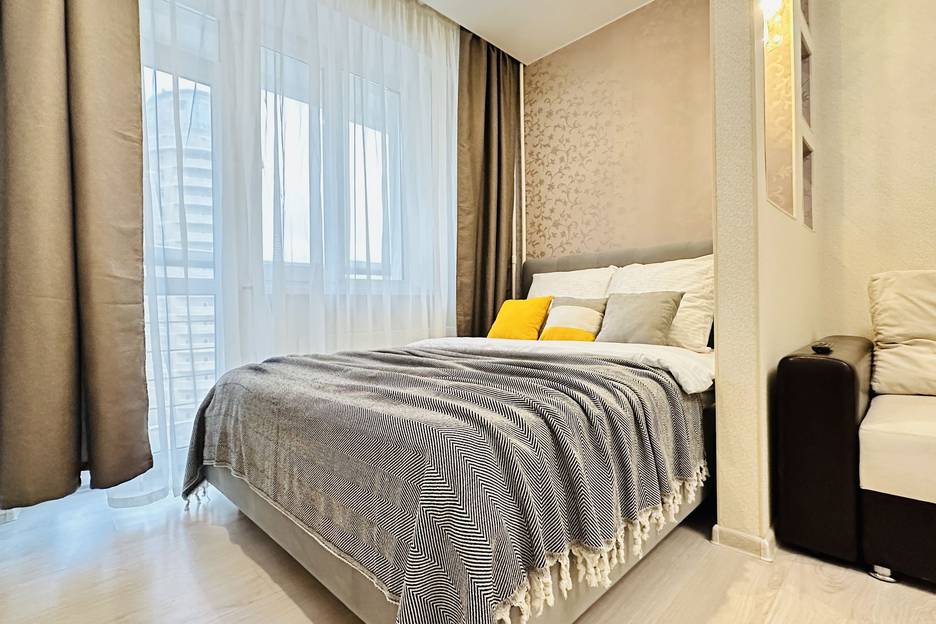 Квартира-студия понравилась, чистая!!! Уютная, всё необходимое есть для проживания нескольких дней. Этаж высокий, вид из окна хороший. Есть кондиционер. Соседей не слышно. Находится на последнем этаже, Лифт едет на предпоследний, поэтому приходилось подниматься один этаж пешком вверх (нужно учесть для колясок). Через дорогу находится небольшой сквер для прогулок. Однозначно рекомендую к проживанию.
