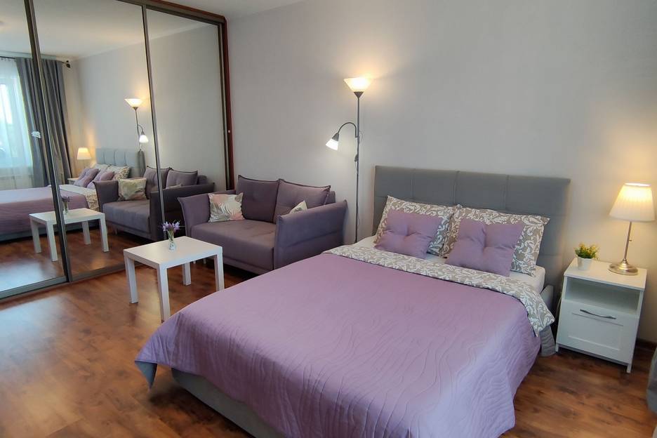 Квартира оснащена всей необходимой техникой и мебелью. В комнате новая кровать и диван-кровать. Есть всё, начиная от скоростного Wi-Fi и заканчивая средствами гигиены.