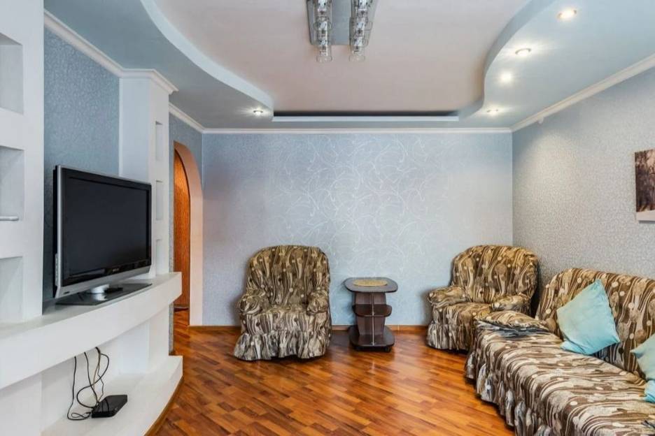 В квартире три раздельных спальных места: двуспальная кровать, односпальная кровать и двуспальный диван. Идеально для семьи или компании.