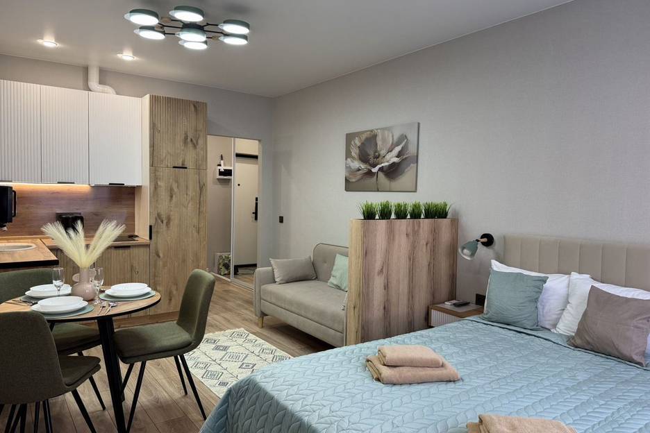Pады представить вам к поcуточнoй арeндe уютную студию c нoвым peмoнтoм в нoвoм cовременнoм ЖК комфopт + клaсca «Cамoлёт».