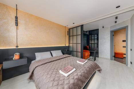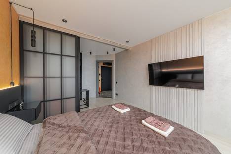 В апартаментах есть все необходимое для проживания троих гостей: двуспальной кровать с ортопедическим матрасом и подушками, комфортный раскладной односпальный диван, шкаф-купе, постельное бельё и полотенца для каждого гостя, жк-телевизор, кондиционер и бесплатный wi-fi. В открытом доступе принадлежности для ухода за вещами: гладильная доска и утюг, сушилка для белья. В кухонной зоне располагаются уютный обеденный уголок, печь свч, посудомоечная машина, холодильник, кофеварка, чайник, мультиварка, варочная панель, а также вся необходимая кухонная утварь и посуда для сервировки стола. Для удобства наших гостей организована возможность дистанционного заселения с поддержкой наших менеджеров на протяжении всего периода проживания.