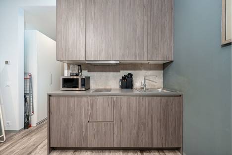 - В кухонной зоне: микроволновая печь, холодильник, чайник, посуда и столовые приборы на любой случай. Чай, кофе, сахар, соль, конфеты.