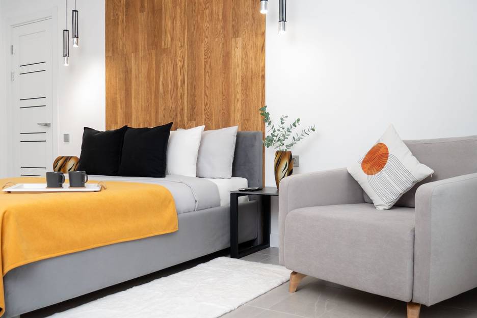 - Полностью оборудованная кухня: микроволновка, холодильник, чайник, кофемашина с капсулами, фильтр обратного осмоса, посуда и приборы. Соль, сахар, перец, чай и капсулы для кофе уже ждут вас.