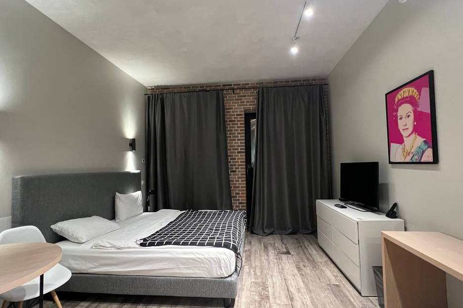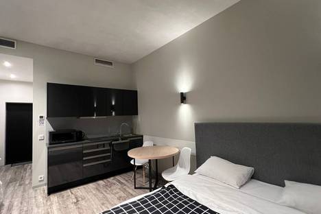 Новая стильная и просторная студия с собственной кухней в в стиле лофт с большими окнами в пол. Расположены в живописном месте на Набережной Макарова.